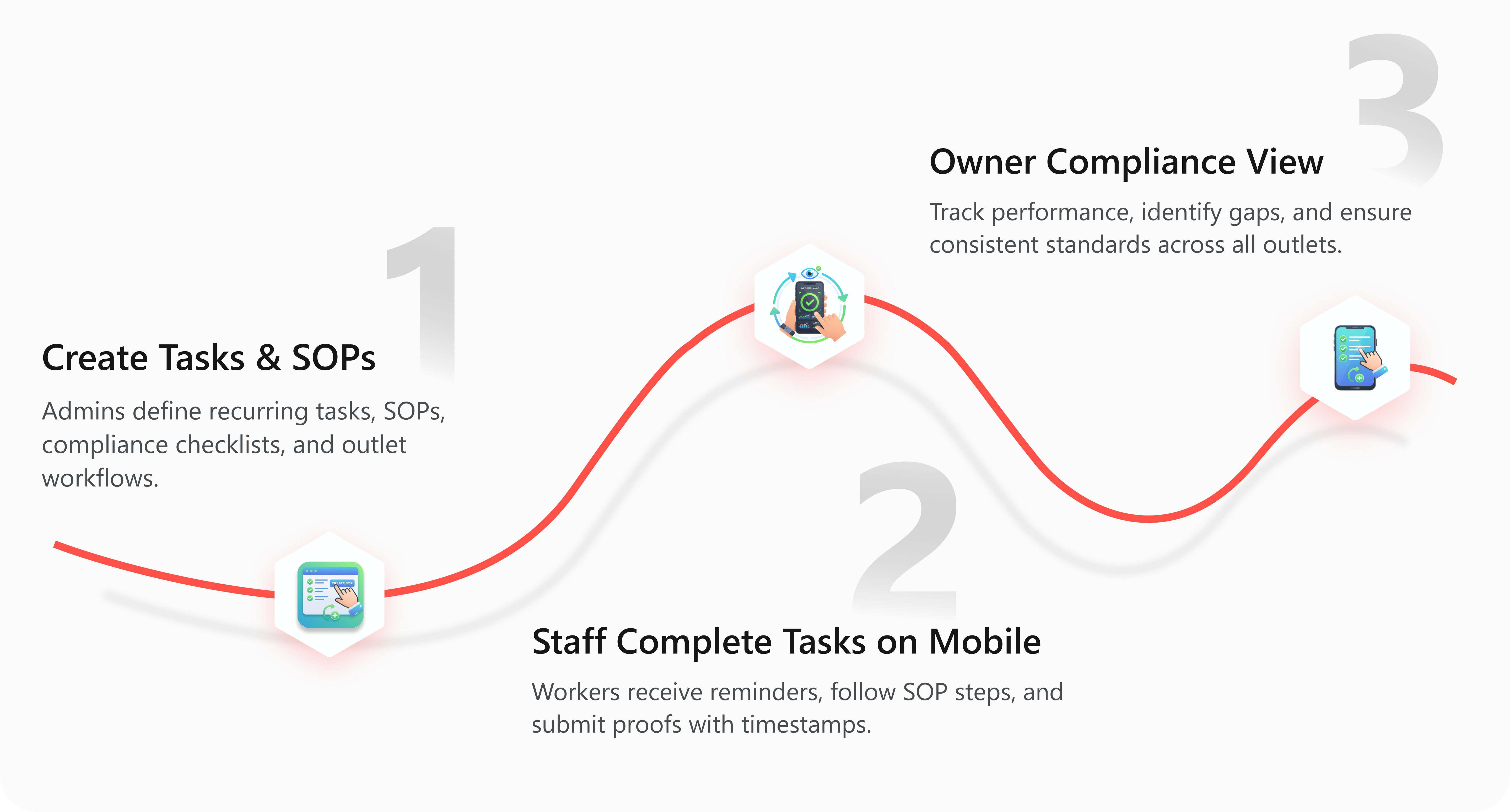 A powerful platform designed for multi-outlet businesses to streamline daily tasks, enforce SOPs, ensure regulatory compliance, and achieve operational excellence.